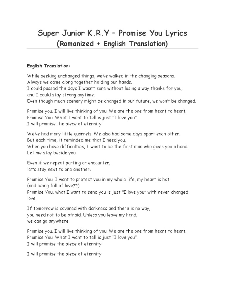 Super Junior K.R.Y - Promise You Lyrics (Romanized ... (Timothy Porter) Mafumafu and nqrse by Mizuki (rap lyrics) - NN YT. English Translation: For a long time, in my heart, Full of clouds, it rains For warm sun to shine, I sincerely hoped. Use our words for your songs.